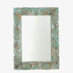An elegant mirror frame crafted from mango wood and adorned with detailed carvings. Perfect for entryways, bedrooms, or living rooms, it enhances any wall with artisanal charm.